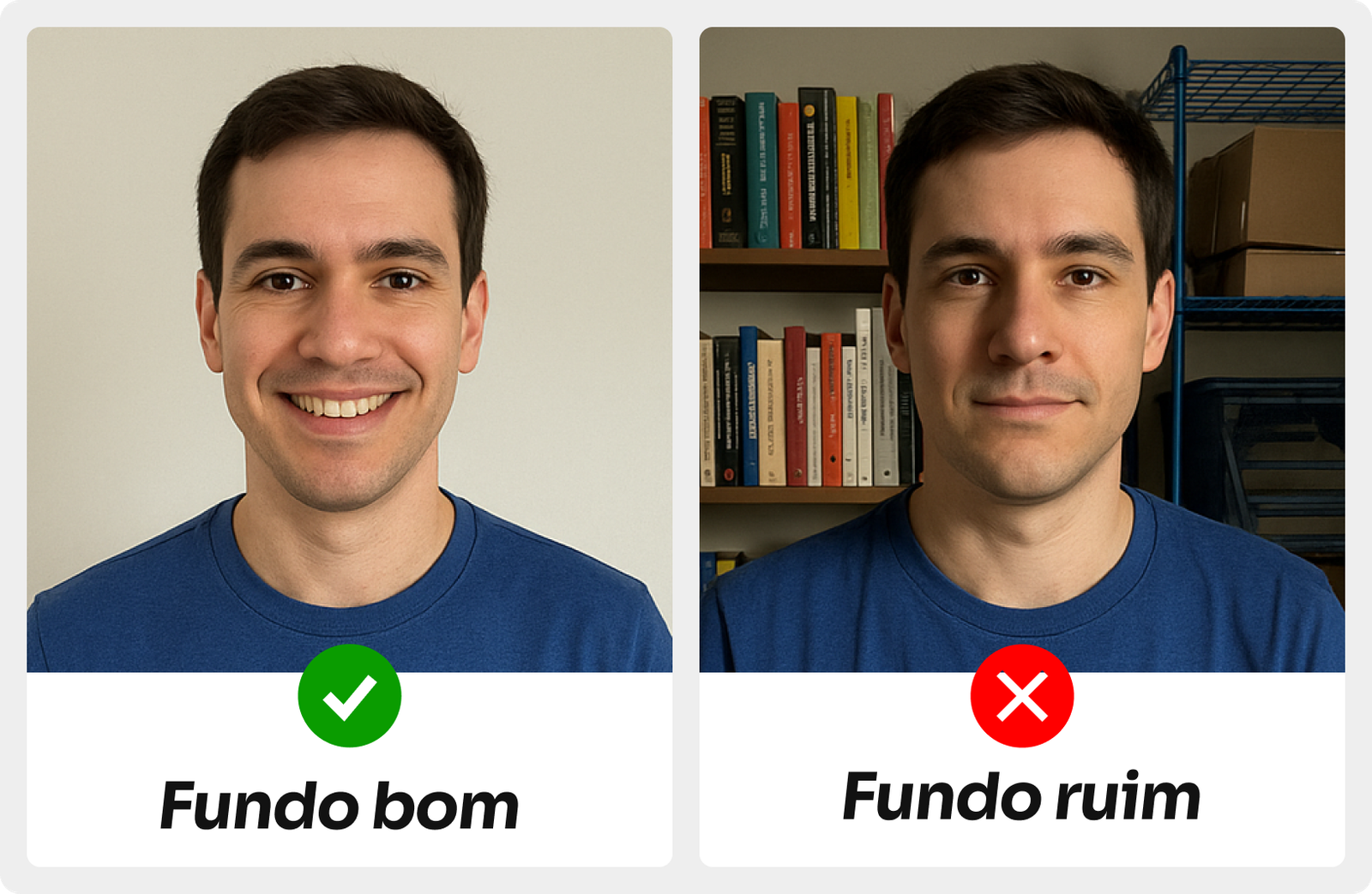 - Mostre ombros e parte do busto (até o topo da cabeça)
