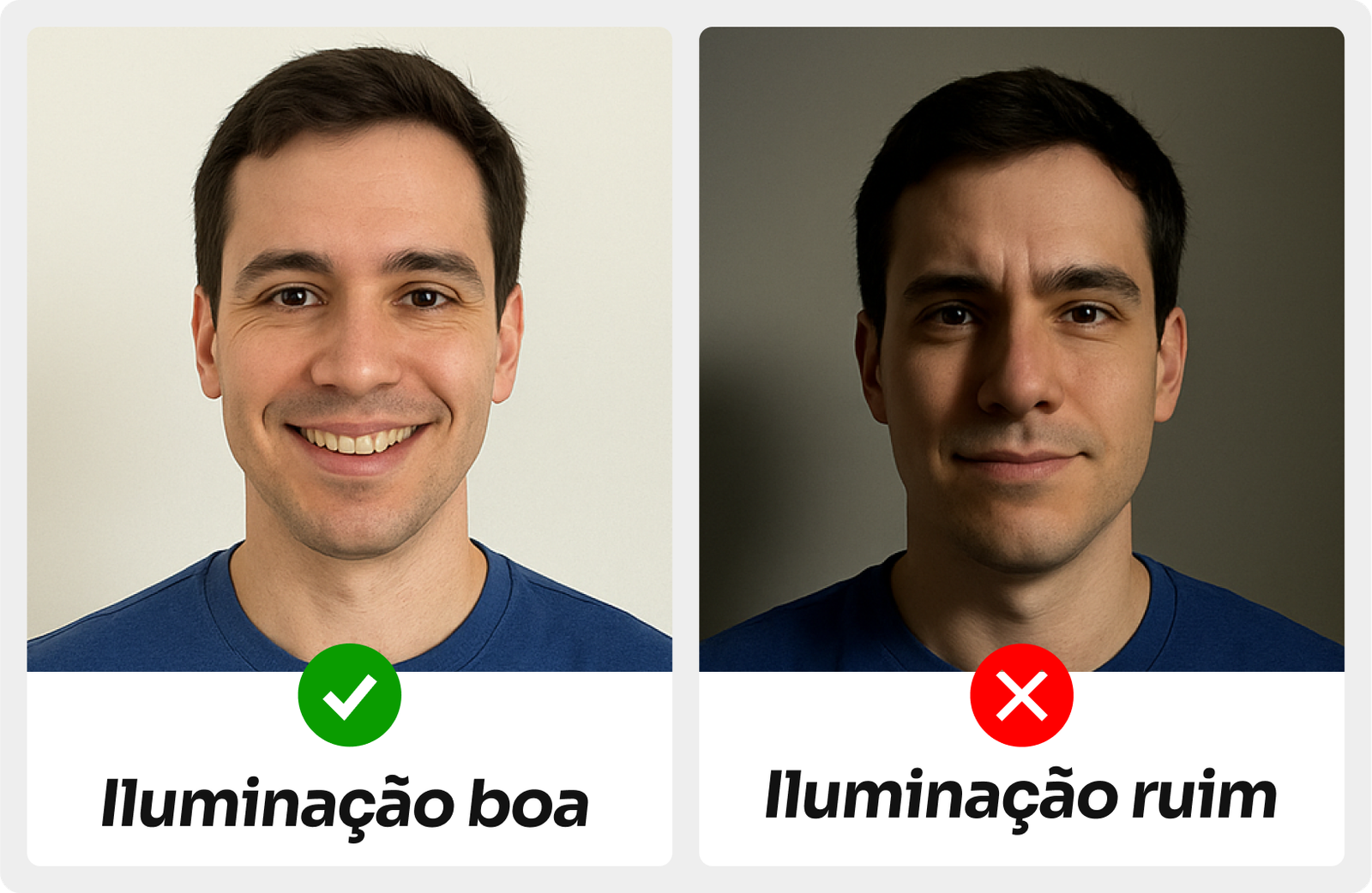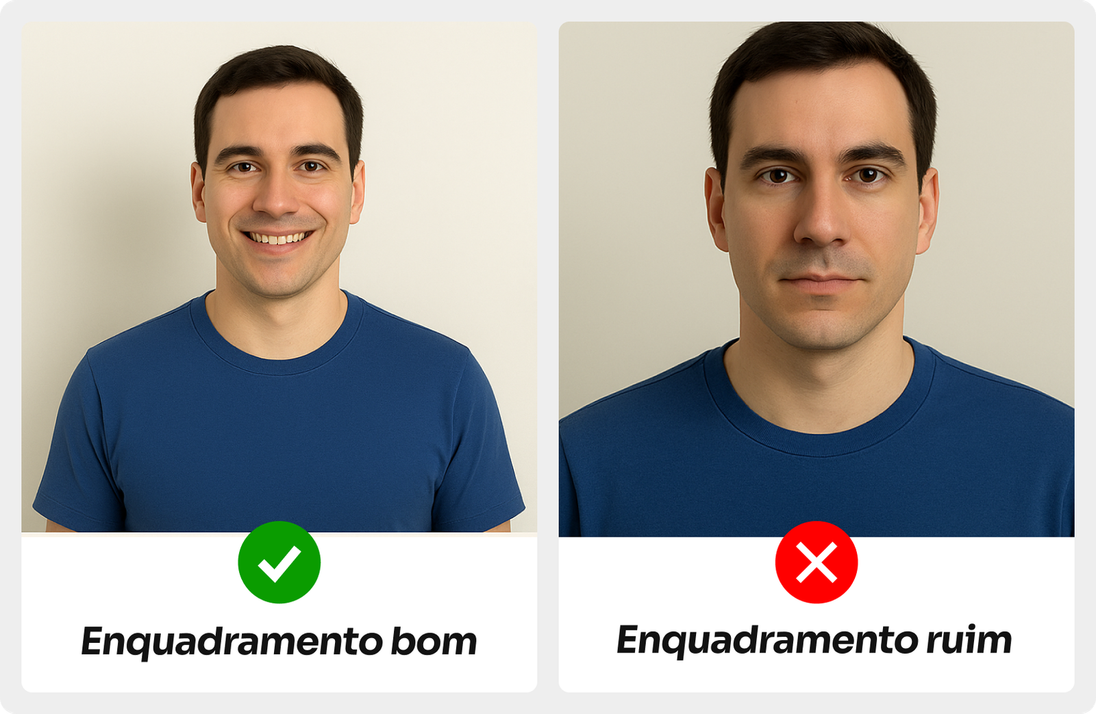 - Mostre ombros e parte do busto (até o topo da cabeça)